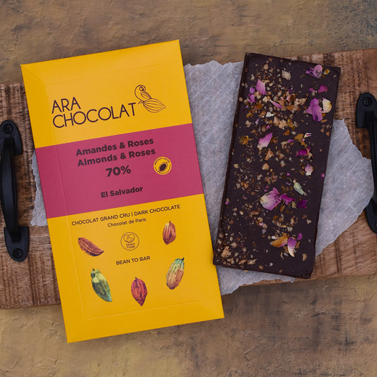 Ara Chocolat Almond and Roses 70% Dark Chocolate Bar