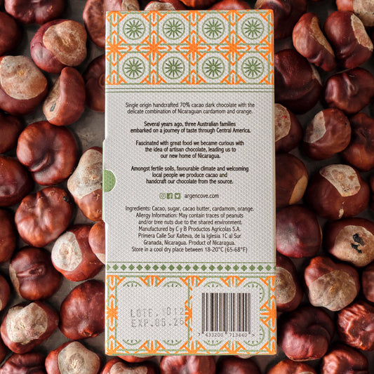 Argencove 70% Cardamom and Orange Dark Chocolate Bar