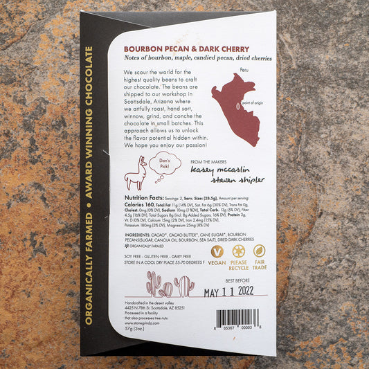 Stonegrindz Bourbon Pecan and Cherry 70-Percent Dark Chocolate Bar