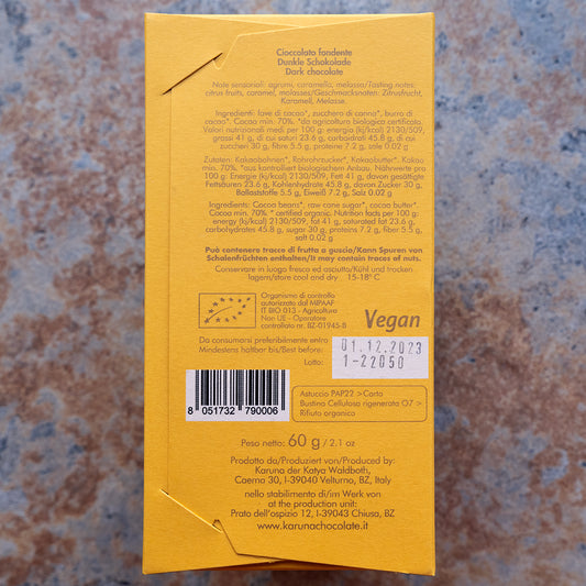 Armin Untersteiner and Katya Waldboth live in South Tyrol, a German-speaking region in Northern Italy.  When they founded Karuna Chocolate in 2018, they were the first in the region to product organic bean-to-bar chocolate.