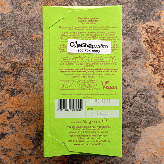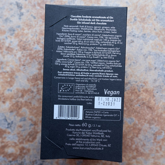Karuna Organic Gin-Infused Percent Dark Chocolate Bar