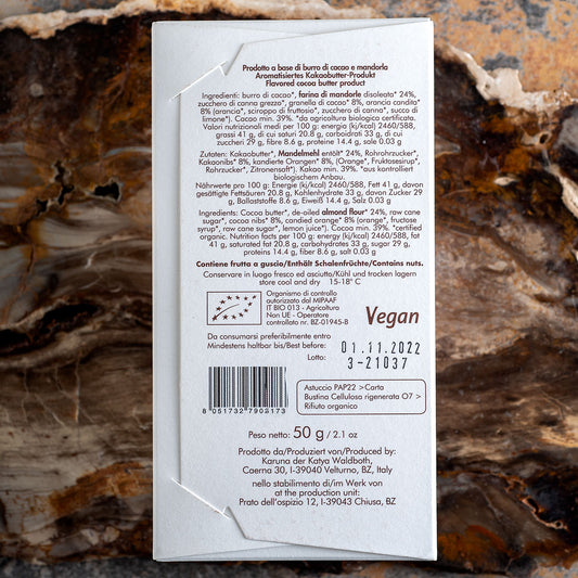 Restocking - choose Notify meKaruna Chocolate Toasted Almond with Nibs and Orange Cocoa Butter Bar
