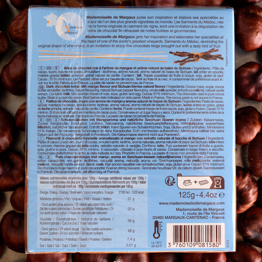 Mademoiselle de Margaux Saveurs Mangue & Baies de Sichuan Dark Chocolate Twigs with Mango and Sichuan Peppercorn