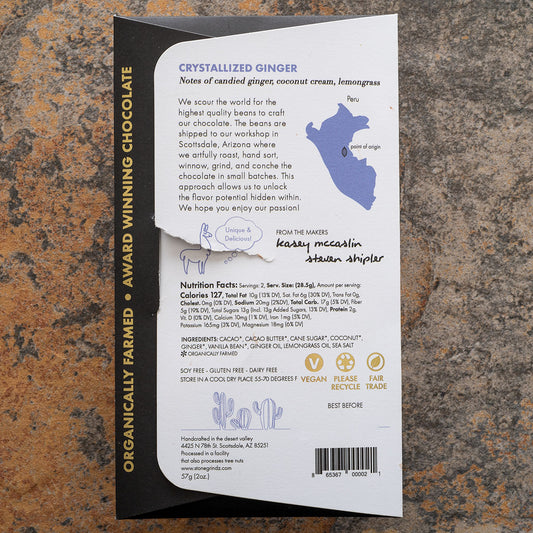 Stonegrindz Crystallized Ginger 55-Percent Coconut Milk Chocolate Bar