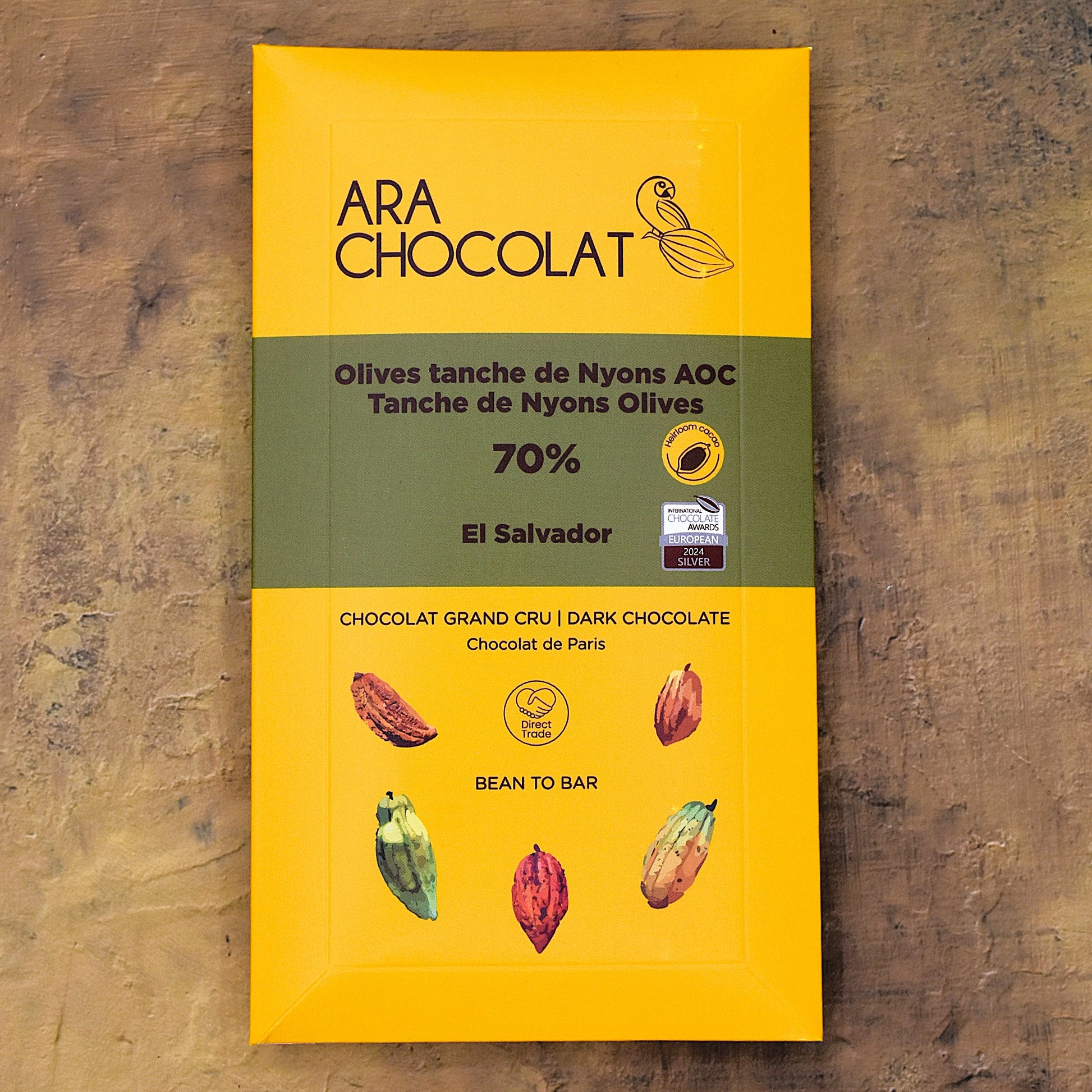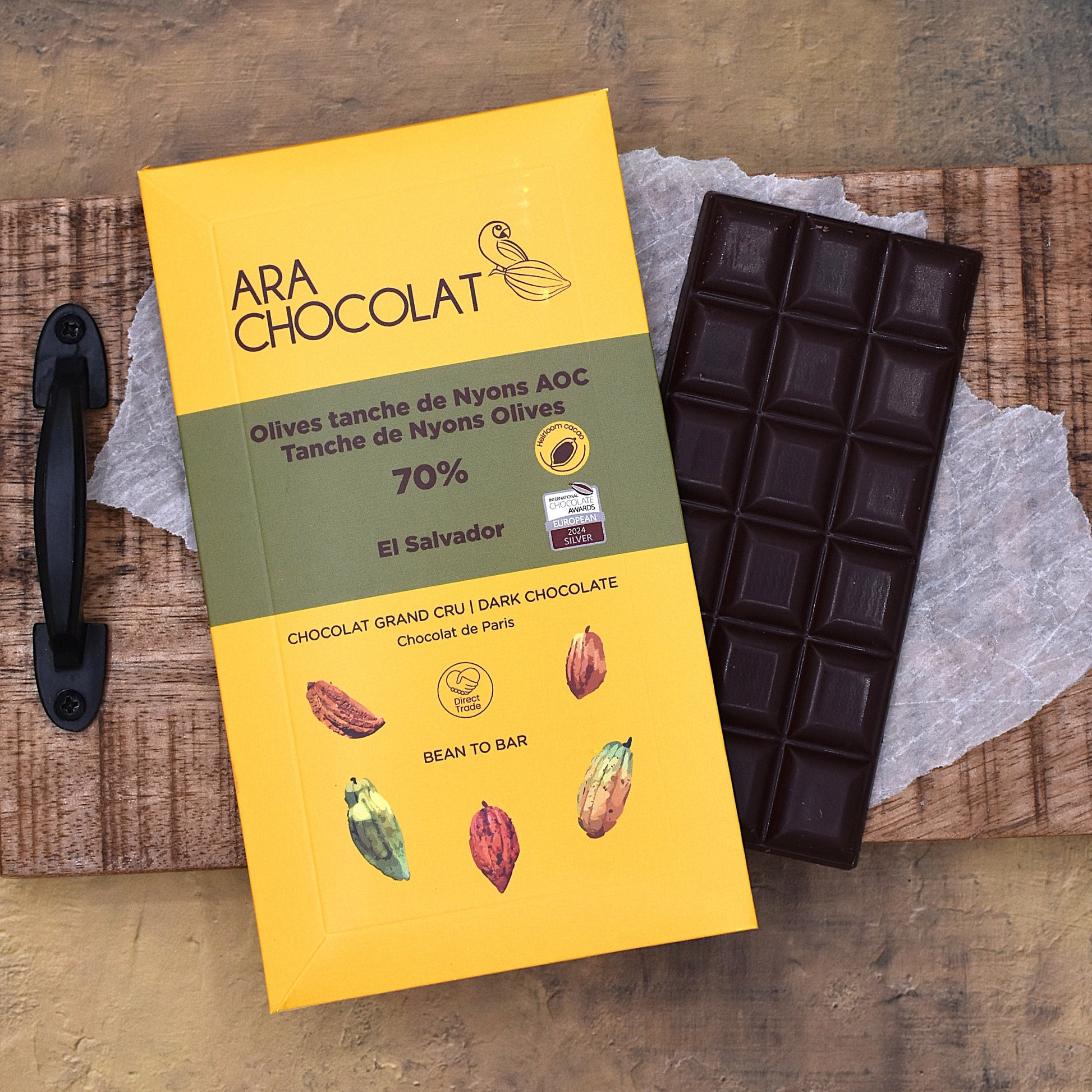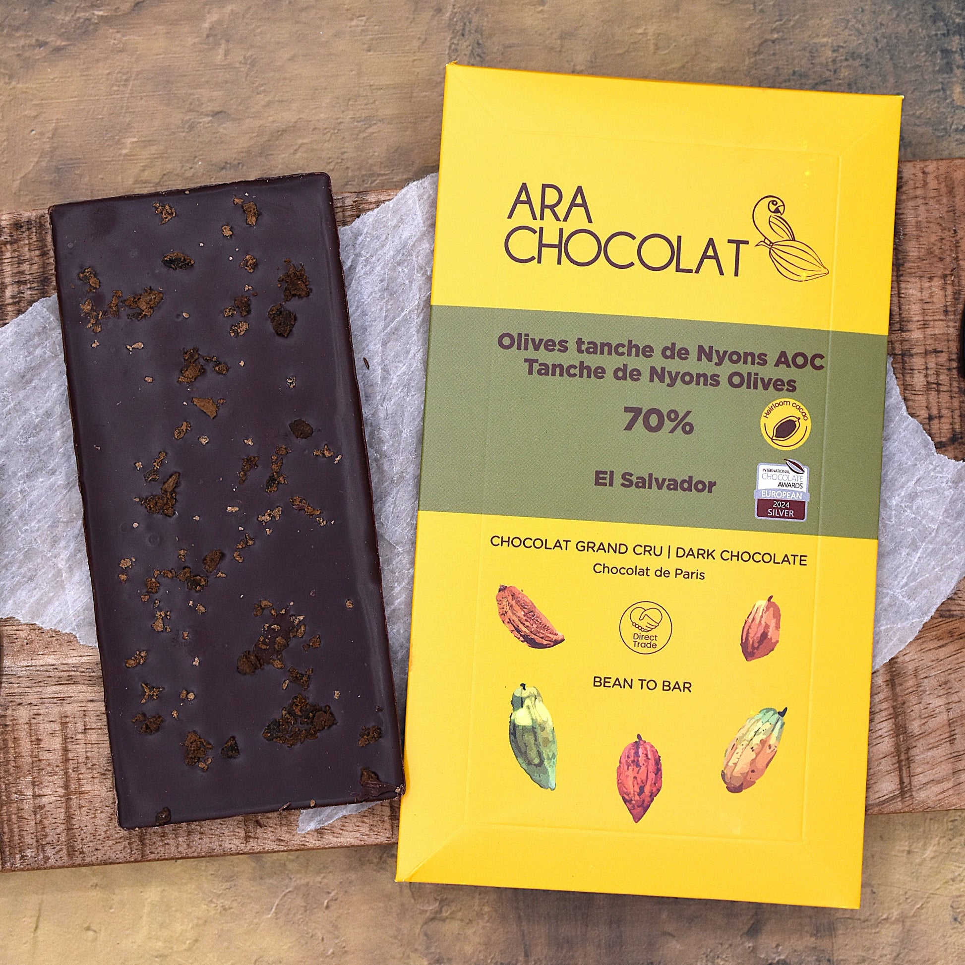 Ara Chocolat 70% Dark Chocolate Bar with Nyons AOC Olives