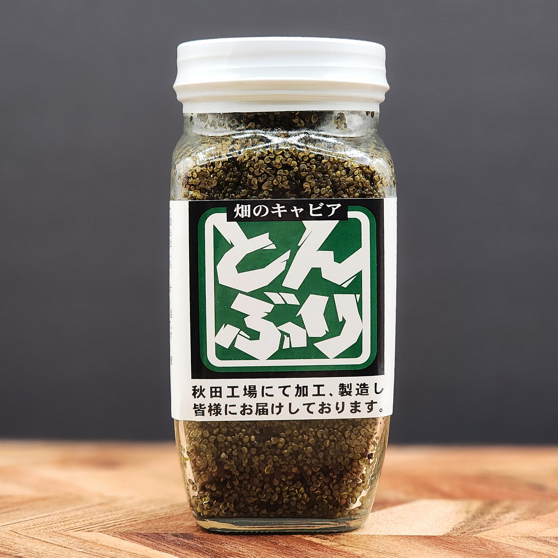 "Tonburi" is the fruit of a herb called Bassia Scoparia, which is famous in Akita prefecture. It often is referred to as "caviar of the field" or "land caviar" due to its appearance. It can be combined with almost every food. It has a caviar like texture, and is easy to match with other ingredients as it will not alter the overall flavor too much.