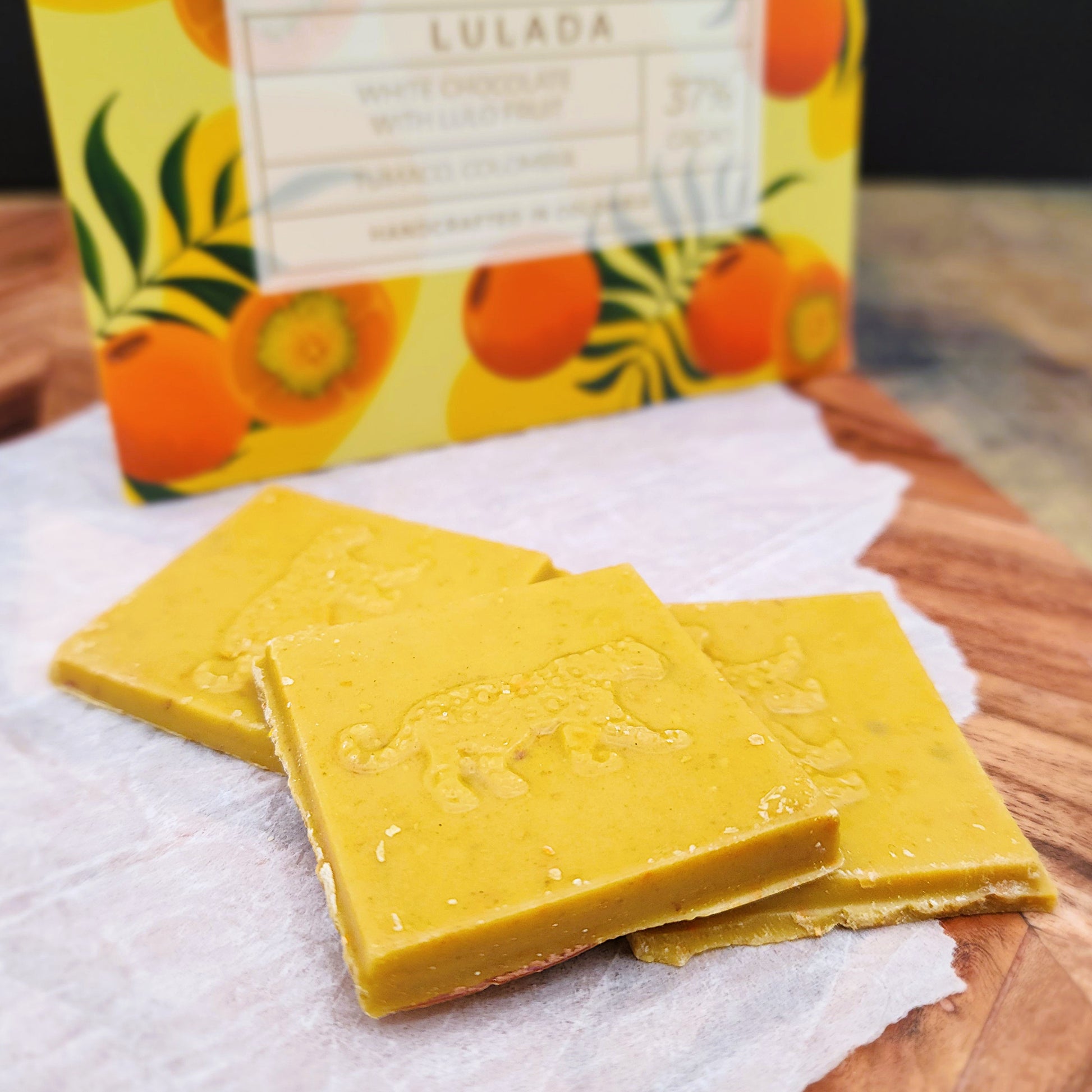At 37%, this is a white chocolate that feels energetic rather than sweet-heavy. The balance between creamy cacao butter, milk powder, and vivid fruit acidity makes each bite feel refreshing and palate-cleansing. The unique character of the lulo fruit will have you savoring and coming back for another chance to discover its complexity.