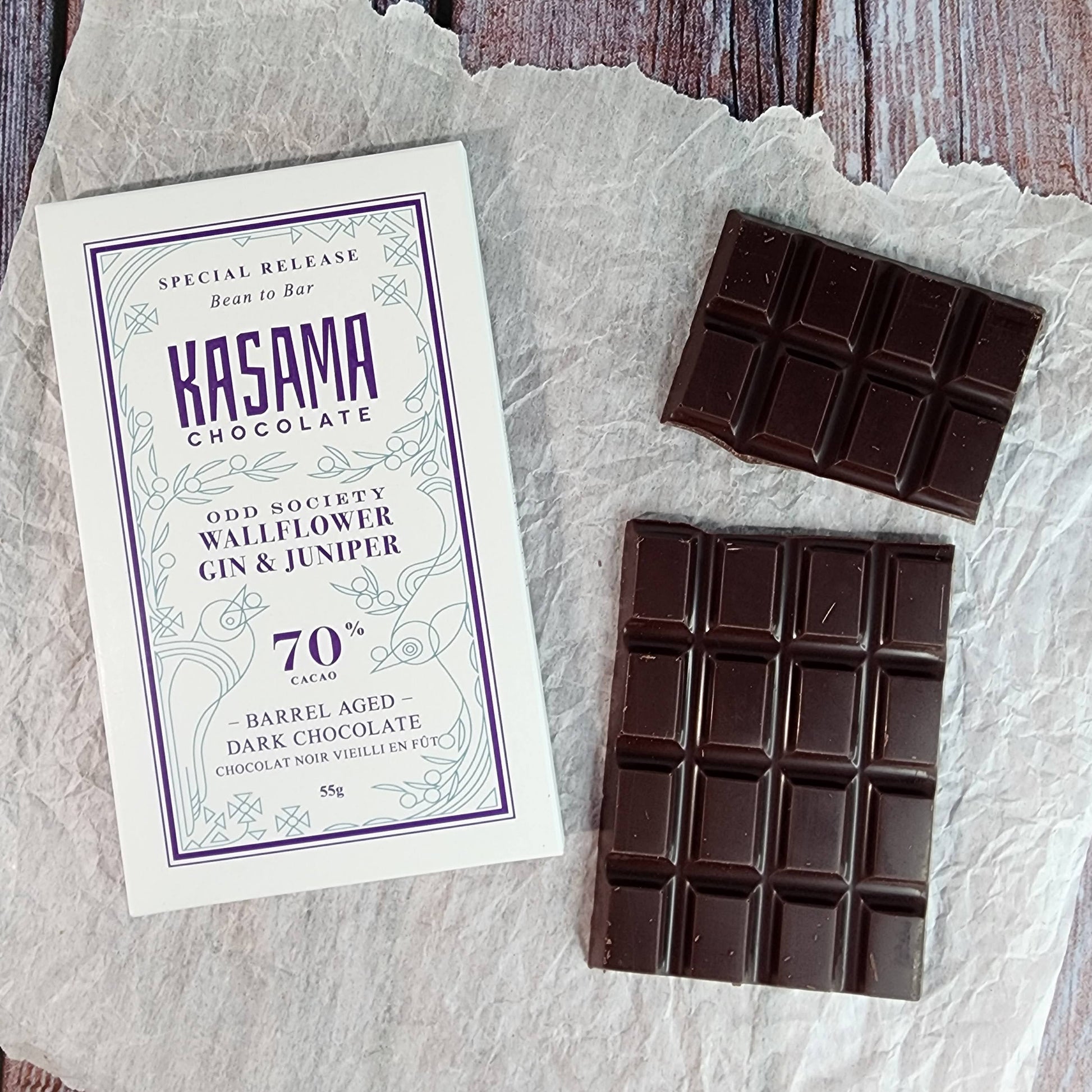 Kasama Chocolate Wallflower Gin and Juniper 70% Barrel Aged Dark Bar
