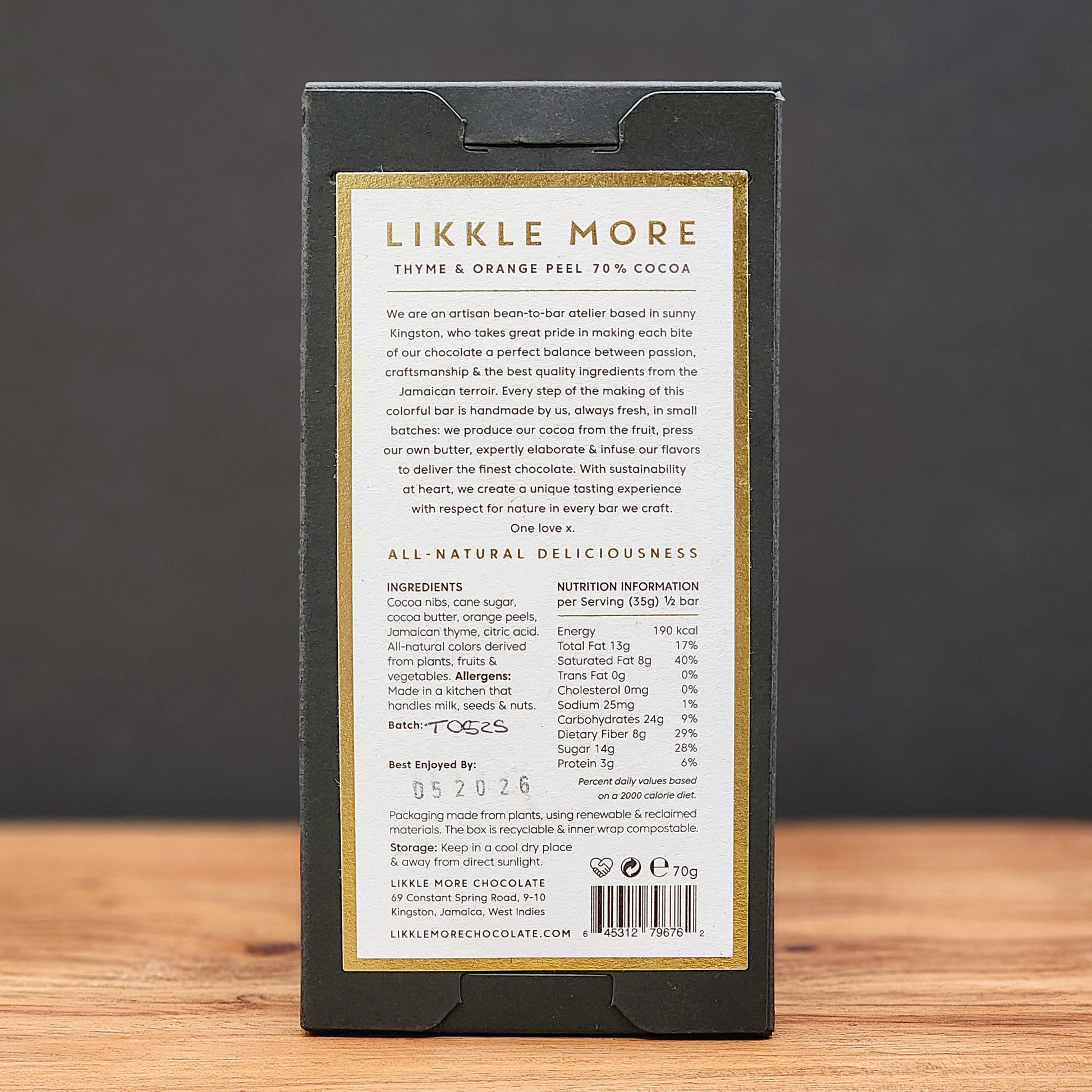 Likkle More Jamaican Thyme and Orange Peel 70% Dark Chocolate Bar