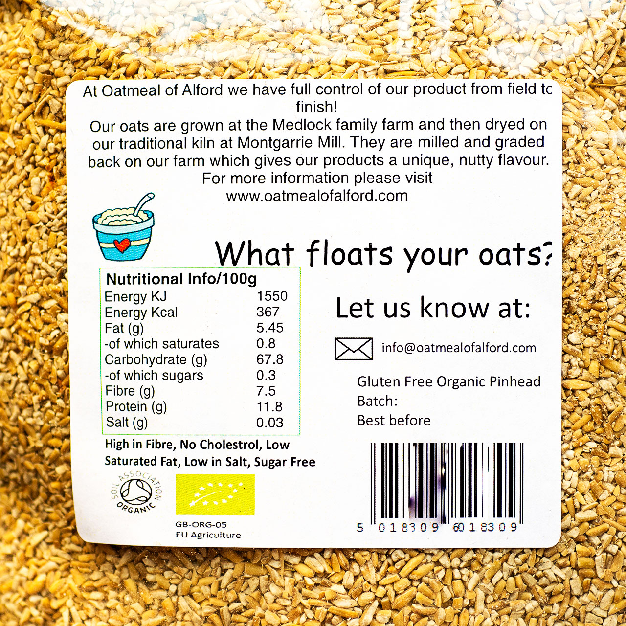 Alford Oatmeal is renowned for its traditionally nutty flavor and unique texture. Scottish pinhead oats are whole oats that have been cut into pieces and have a chewier, nuttier texture than rolled oats. Their flavor can be attributed to the final drying process, which takes place in an old fashioned 'flat kiln', which is believed to be the only one of its kind used in Britain today.