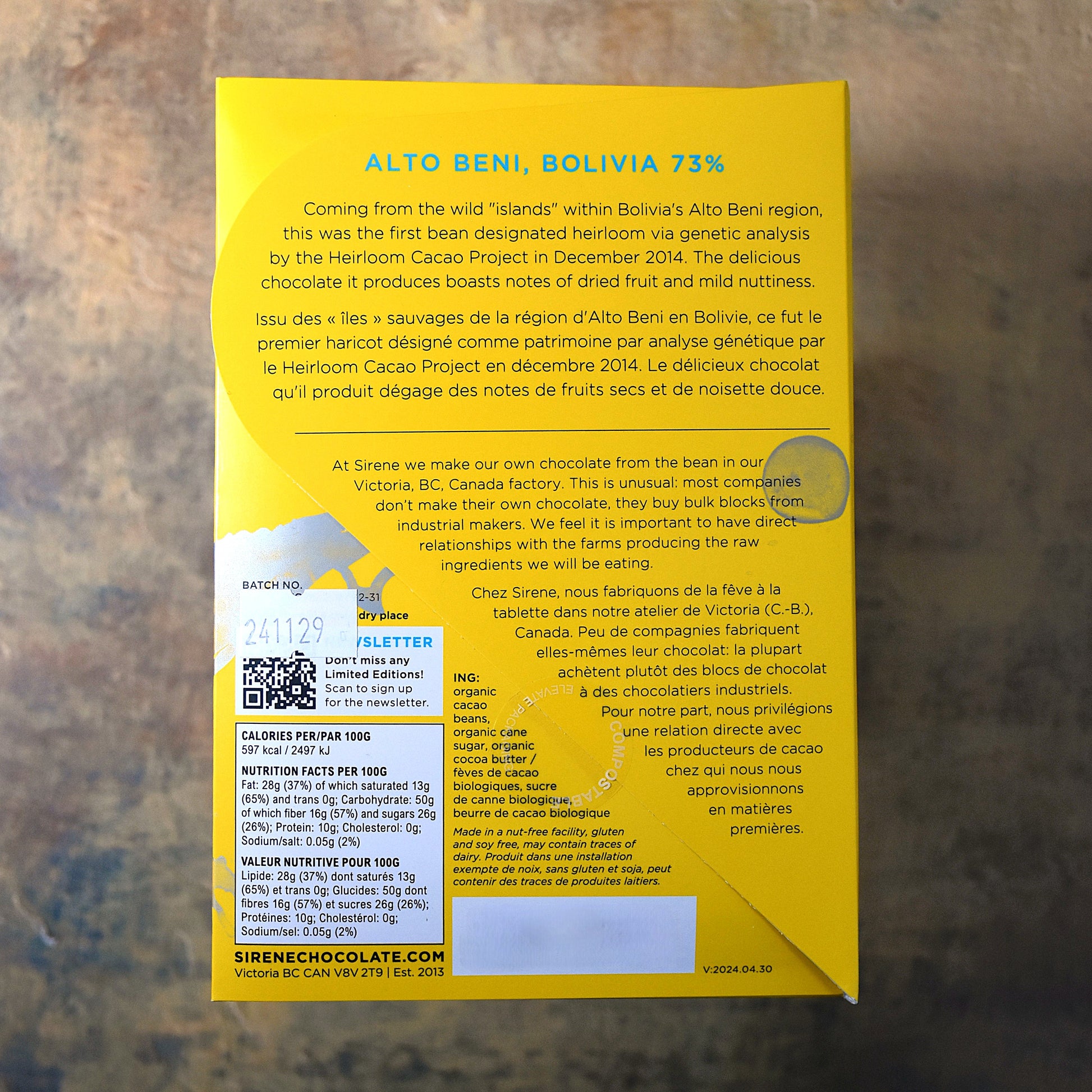 Sirene Alto Beni, Bolivia 73% Dark Chocolate