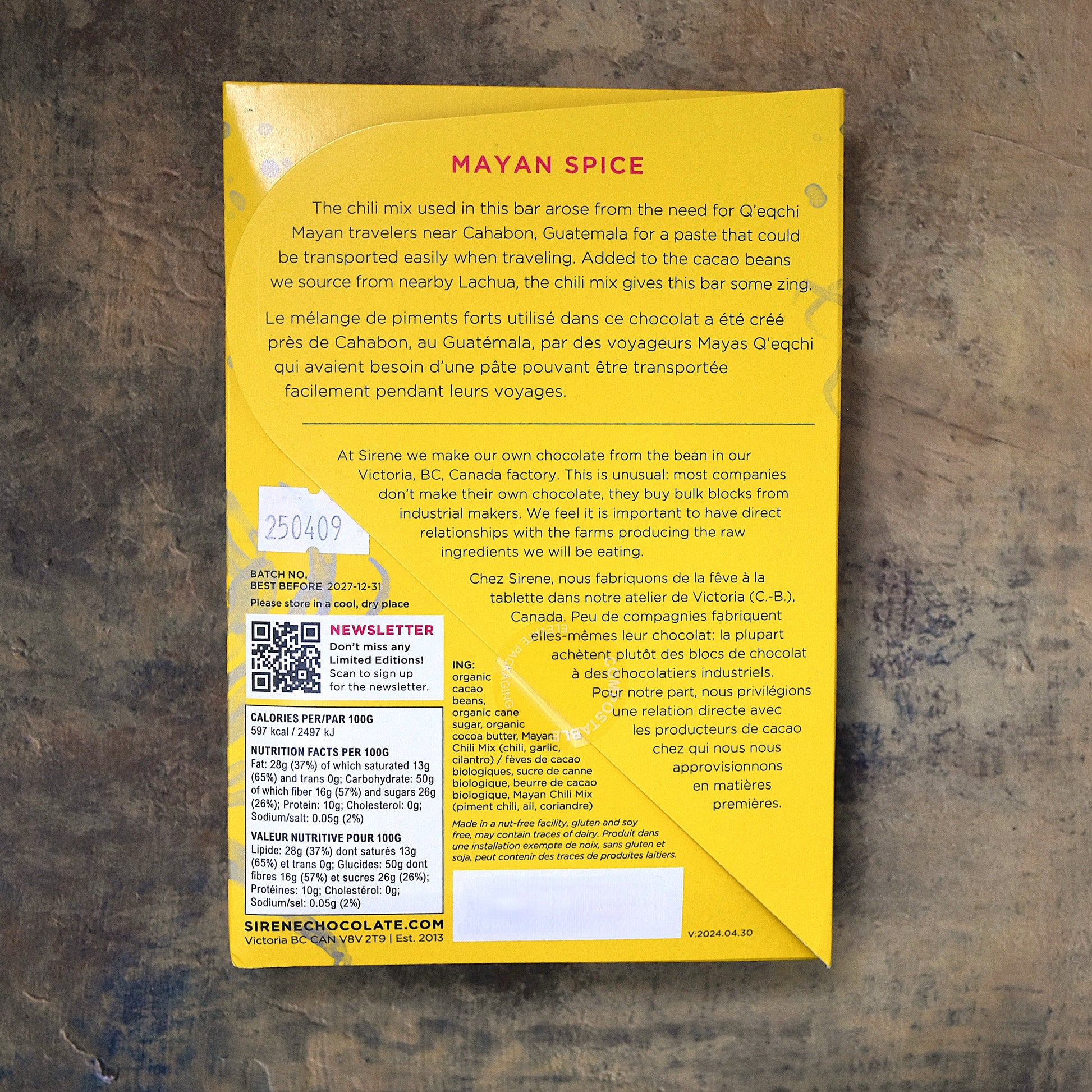 Sirene Mayan Spice 73% Dark Chocolate with Chili